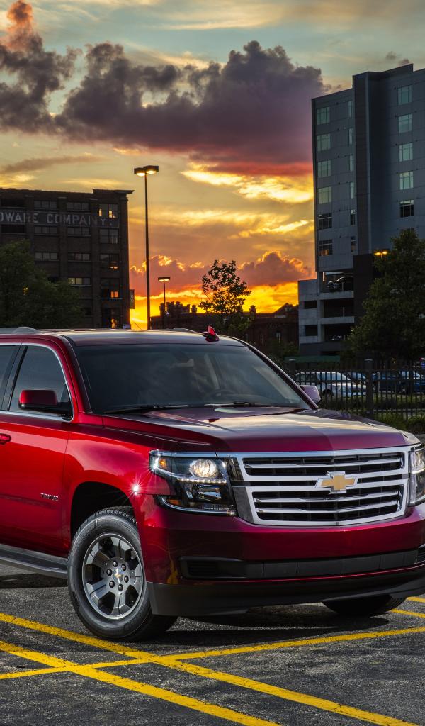 Обои Красный внедорожник Chevrolet Tahoe на парковке