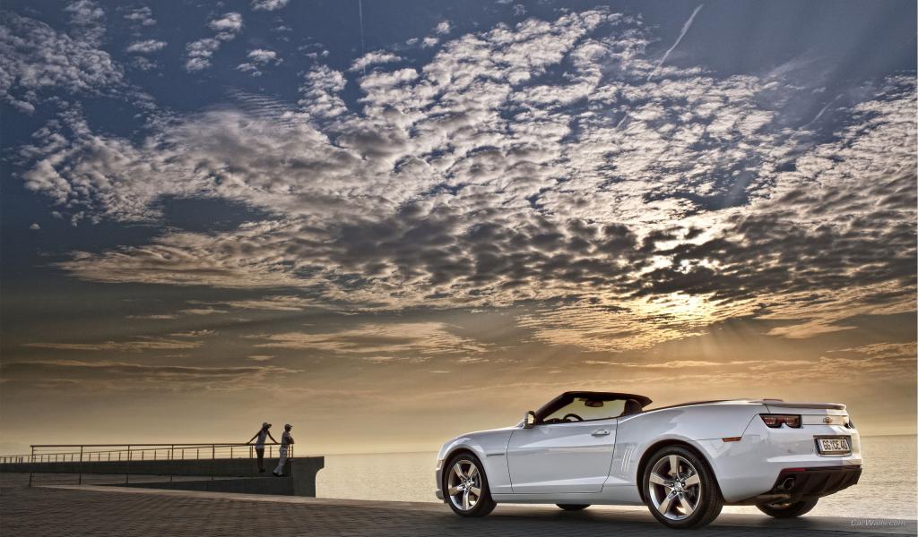 Обои Белый Шевроле на берегу моря