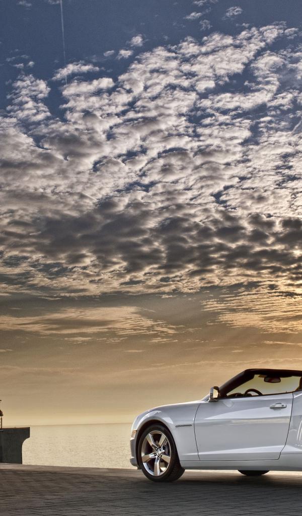Обои Белый Шевроле на берегу моря