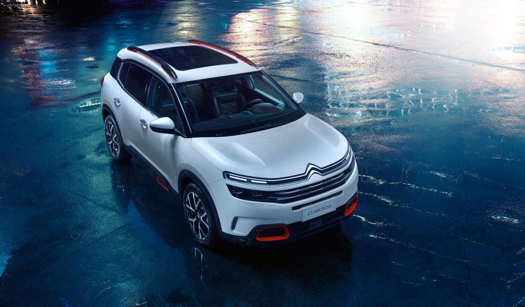 Обои Серебристый кроссовер Citroen C5 Aircross на мокром асфальте