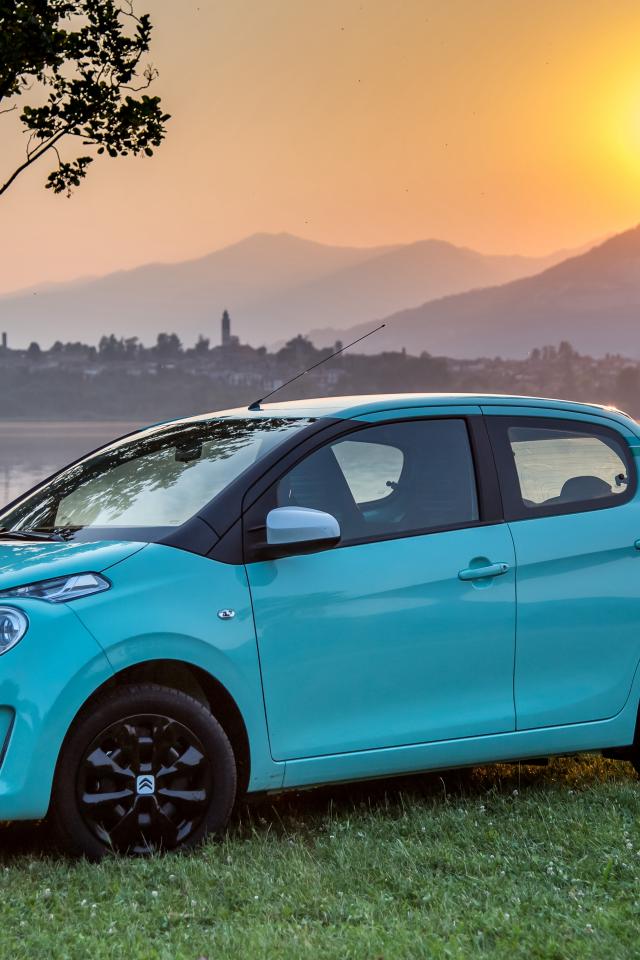 Обои Голубой автомобиль Citroen C1 Pacific Edition на рассвете, 2017