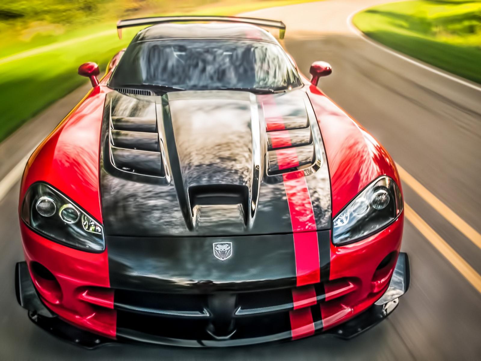 Обои Красный Dodge Viper ACR с черной полосой