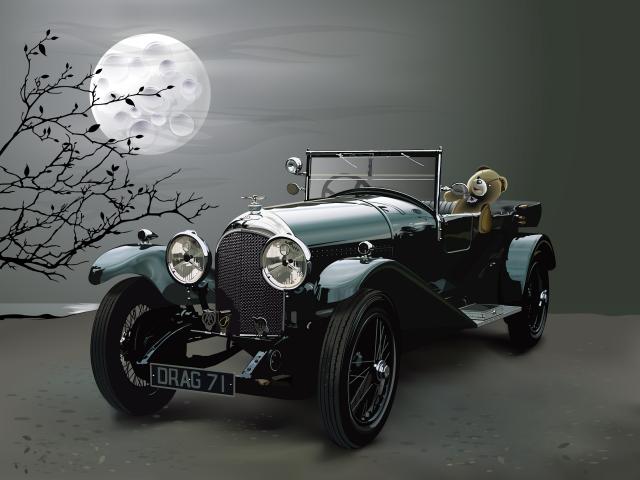 Обои Ретро девушка в белом платье у ретро автомобиля