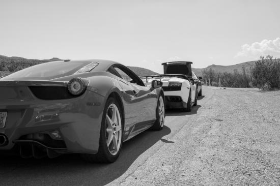 Обои Черно белое фото автомобиля Ferrari 458