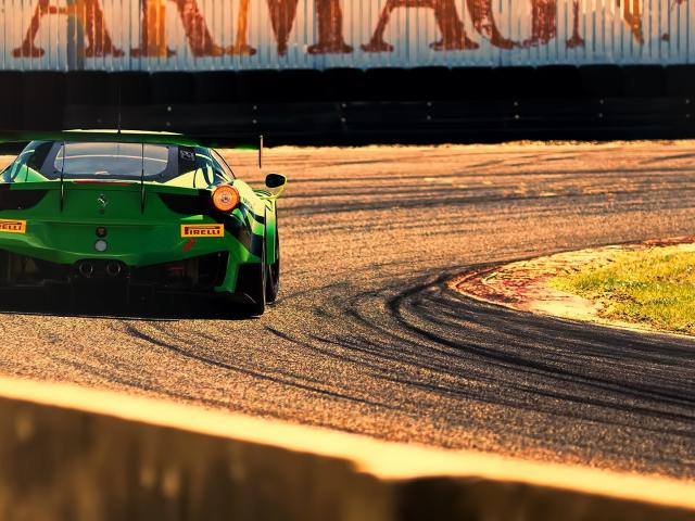 Обои Зеленый Ferrari 458 Italia на гонке