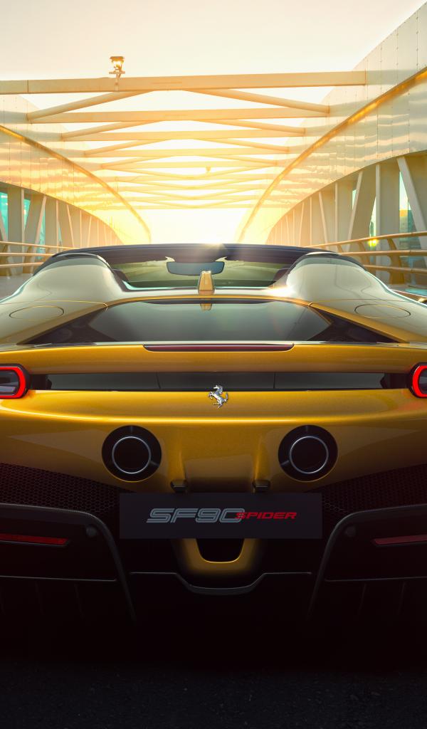 Обои Автомобиль Ferrari SF90 Spider 2021 года вид сзади на мосту