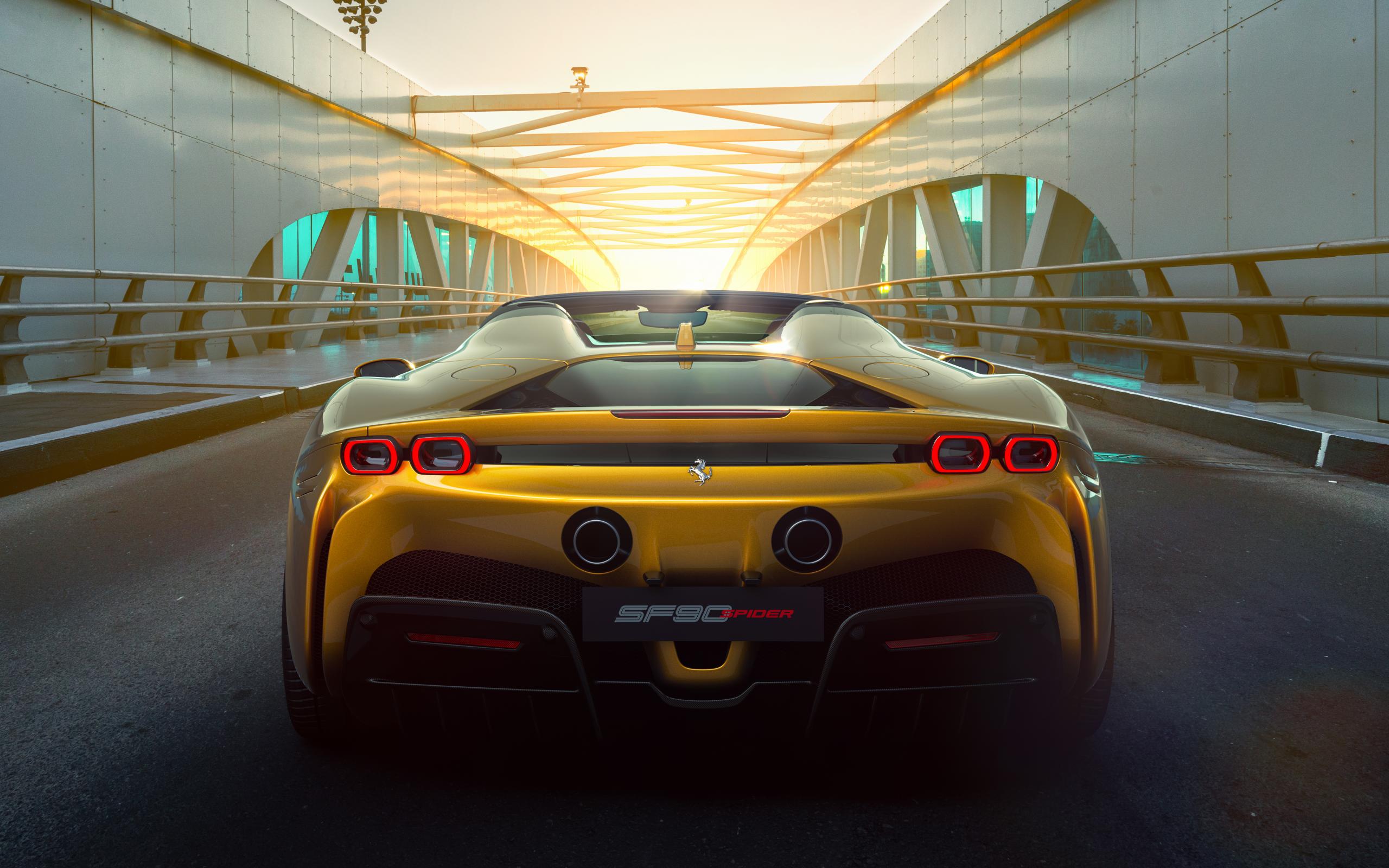 Обои Автомобиль Ferrari SF90 Spider 2021 года вид сзади на мосту