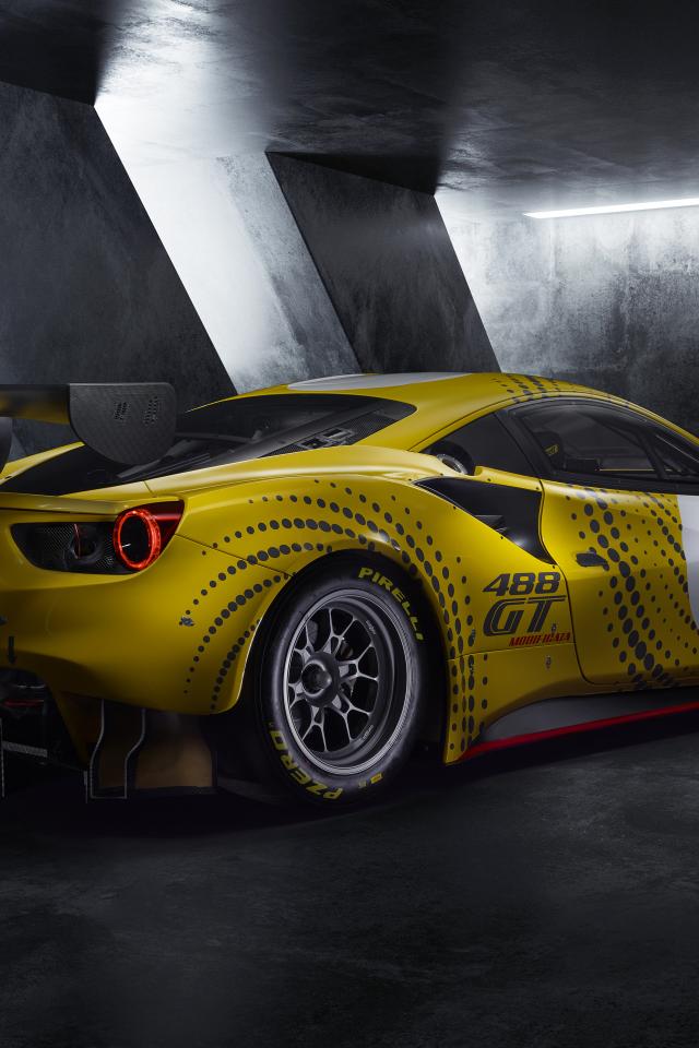 Обои Гоночный автомобиль Ferrari 488 GT Modificata 2021 года у серой стены