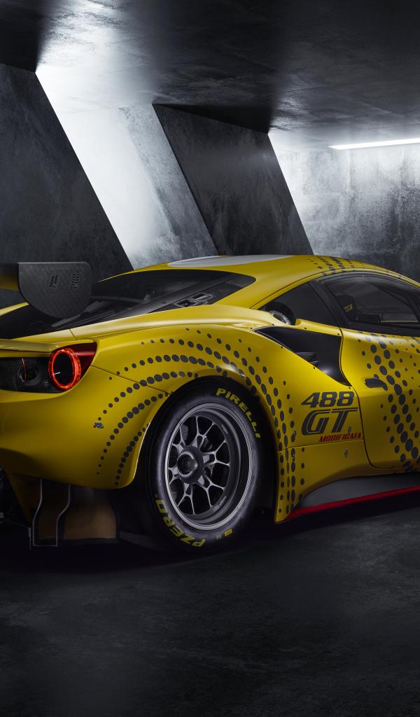 Обои Гоночный автомобиль Ferrari 488 GT Modificata 2021 года у серой стены
