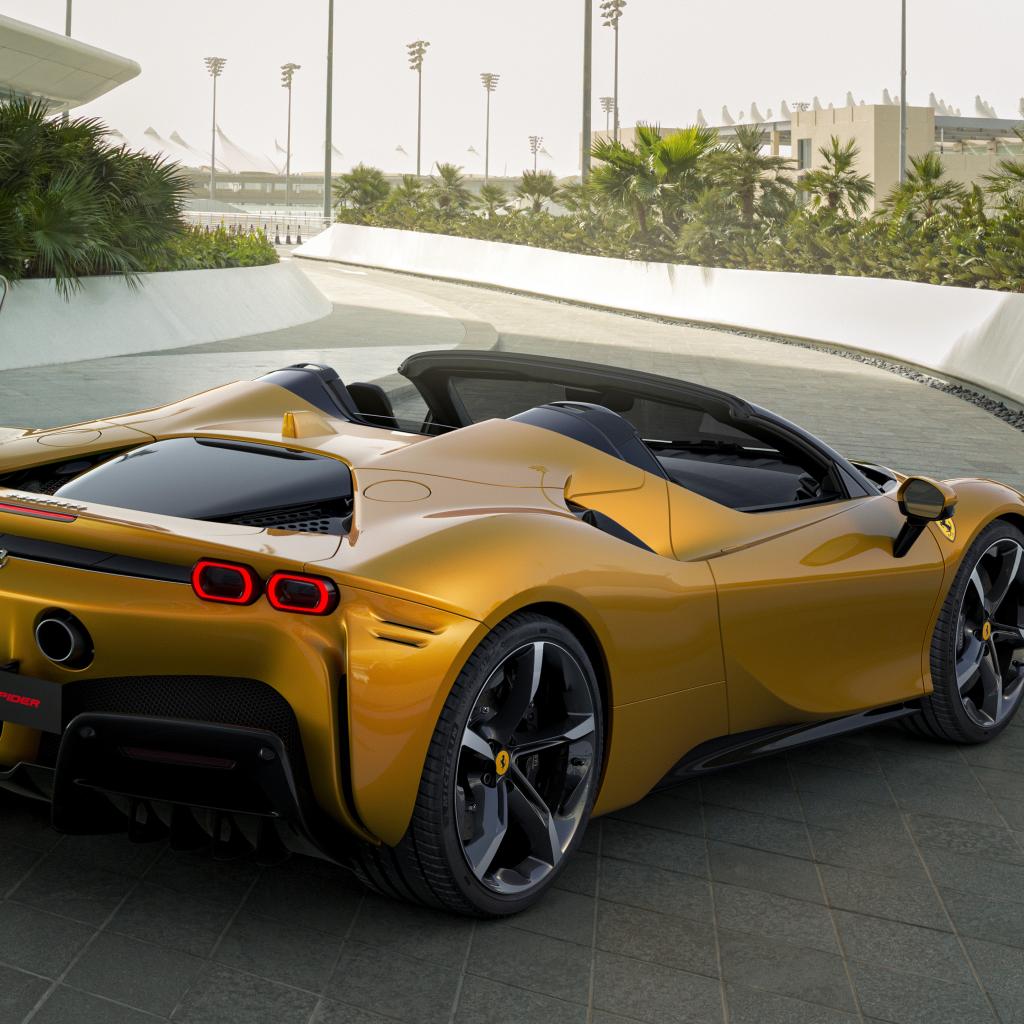 Обои Автомобиль Ferrari SF90 Spider 2021 года цвет золотистый металлик