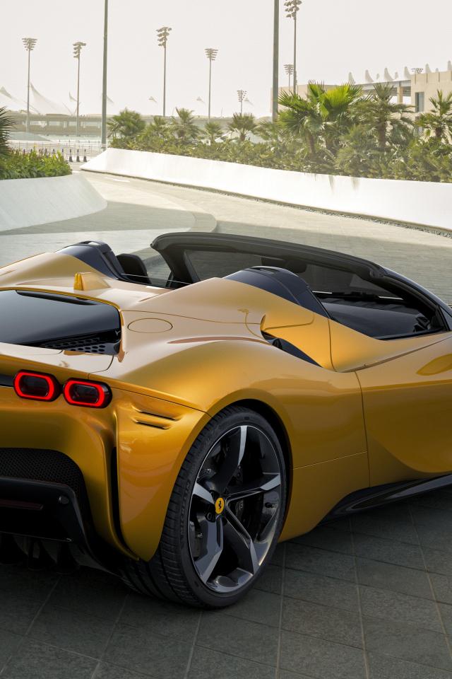 Обои Автомобиль Ferrari SF90 Spider 2021 года цвет золотистый металлик