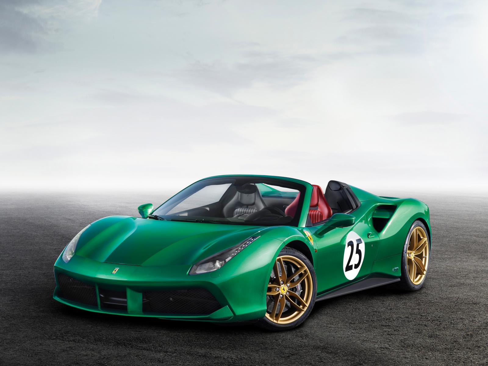 Обои Зеленый спортивный автомобиль Ferrari 488 Spider, 2017