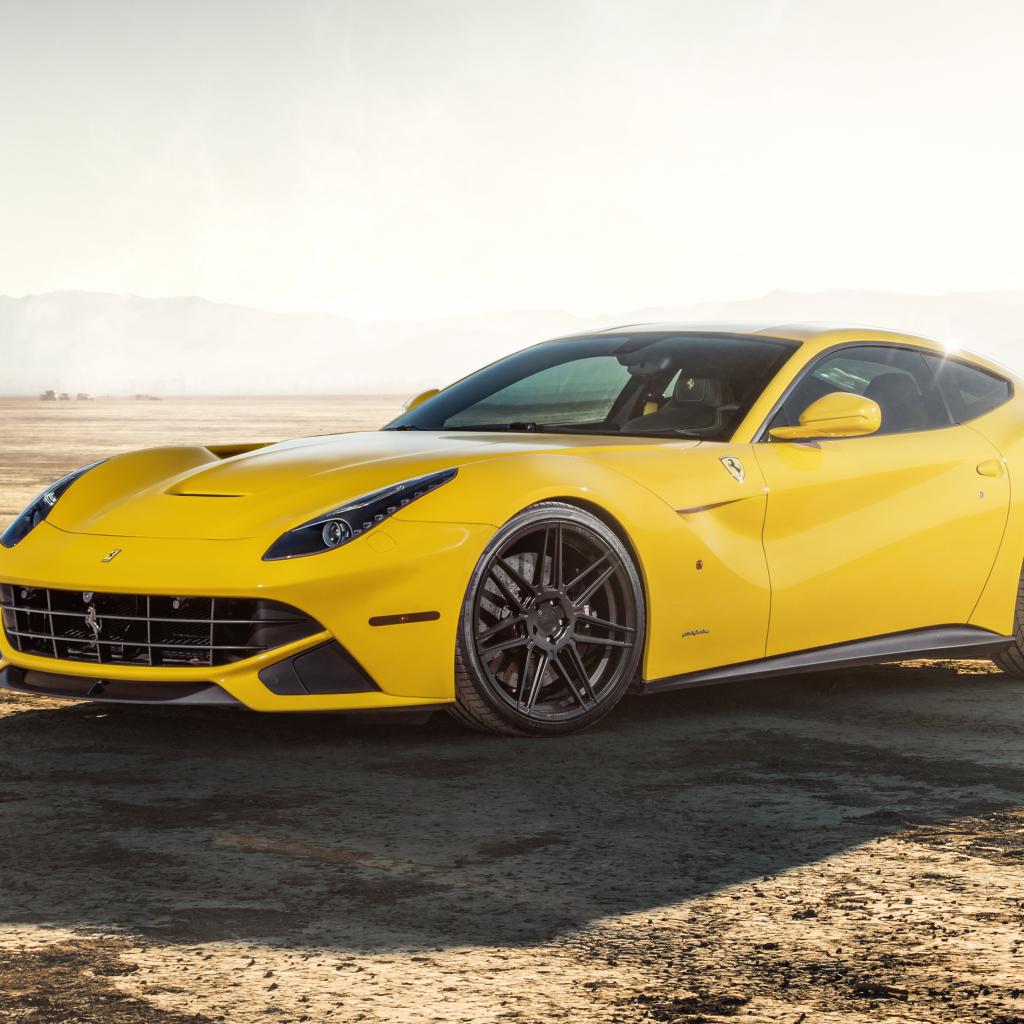 Обои Спортивный автомобиль Ferrari F12 на песчаной дороге
