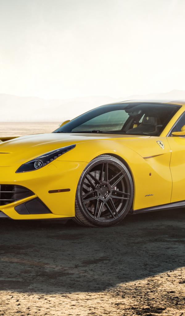 Обои Спортивный автомобиль Ferrari F12 на песчаной дороге