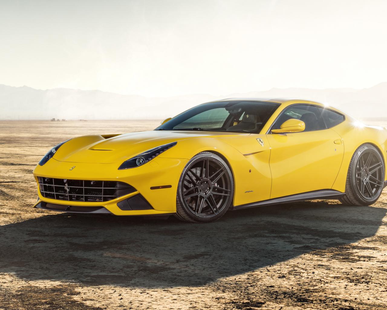 Обои Спортивный автомобиль Ferrari F12 на песчаной дороге