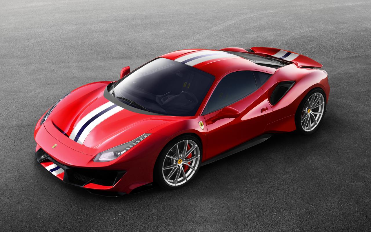 Обои Красный спортивный автомобиль Ferrari 488 Pista 2018