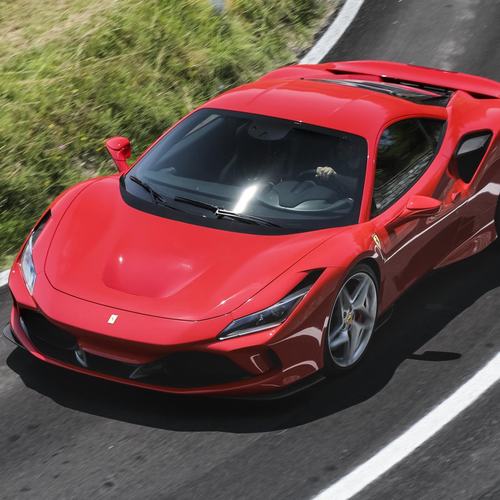 Обои Красный автомобиль Ferrari F8 Tributo 2019 года на дороге