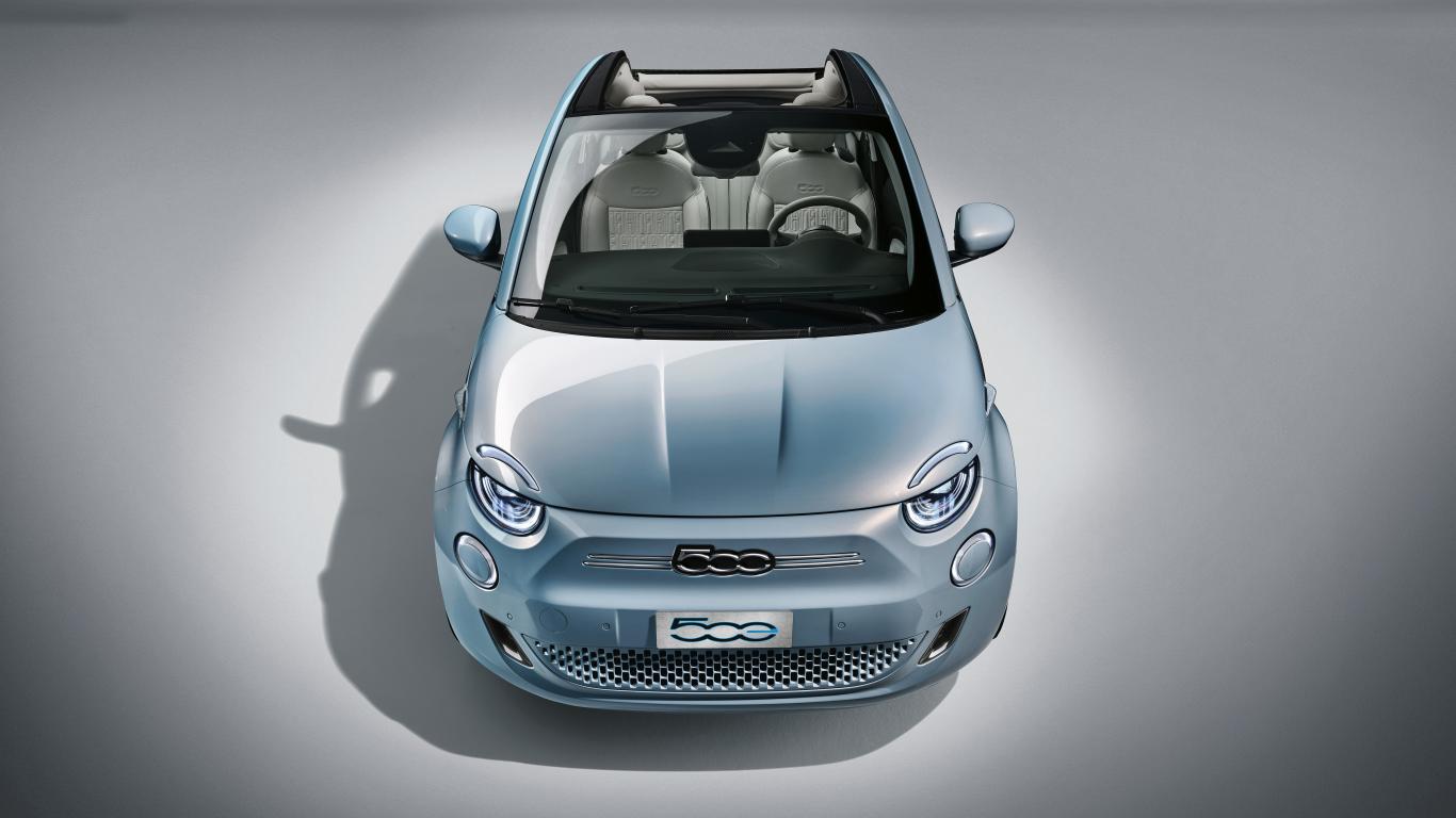 Обои Кабриолет Fiat 500, 2020 года на сером фоне