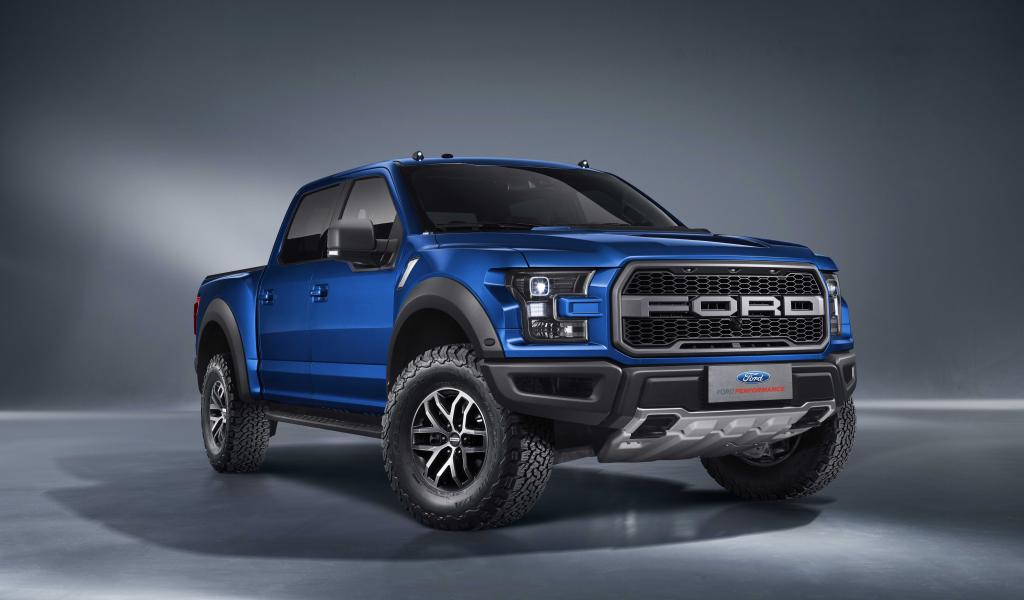 Обои Синий автомобиль пикап Ford F-150 на сером фоне