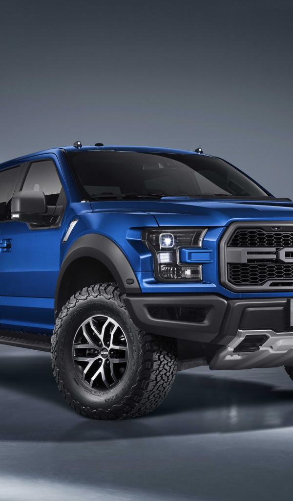 Обои Синий автомобиль пикап Ford F-150 на сером фоне