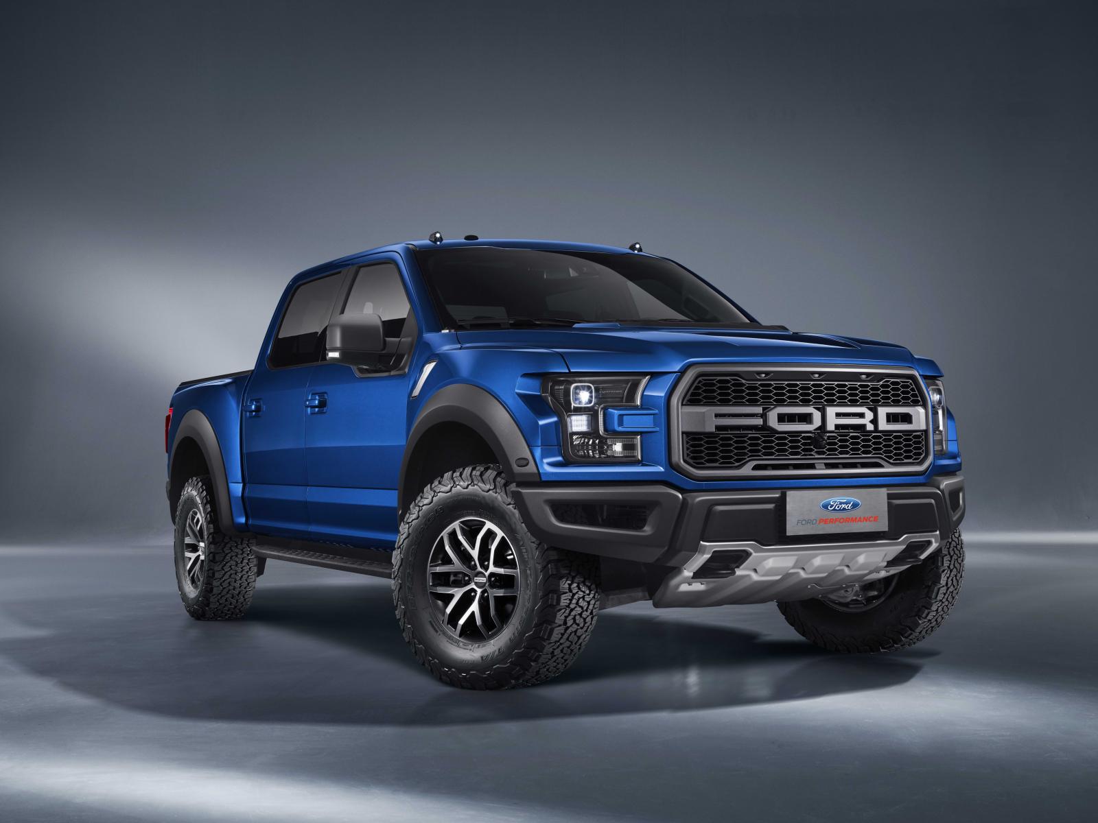 Обои Синий автомобиль пикап Ford F-150 на сером фоне