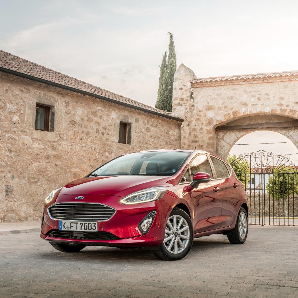 » Обои Красный стильный автомобиль Ford Fiesta Titanium, 2017