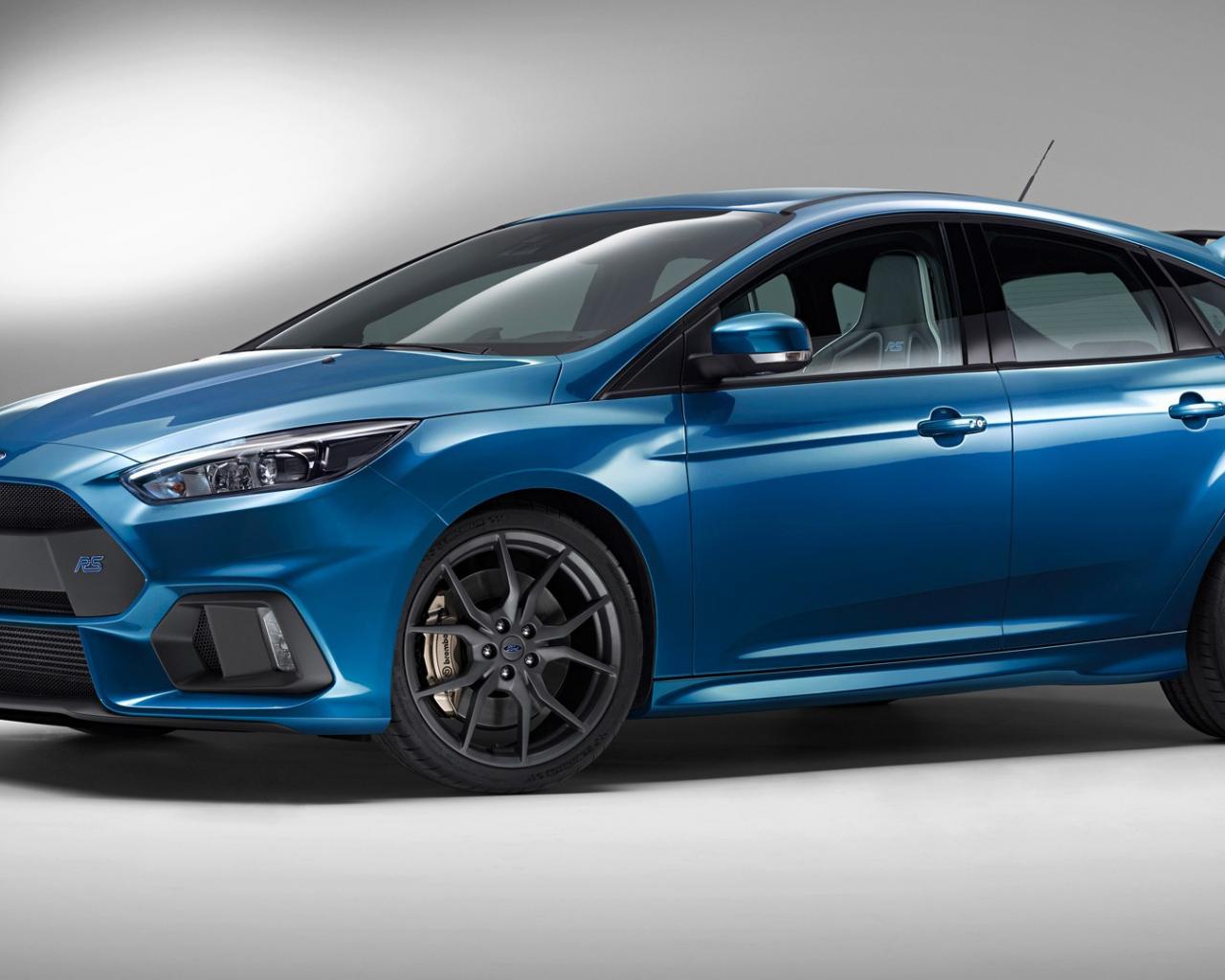 Обои Вид в профиль на голубой Ford Focus RS на сером фоне
