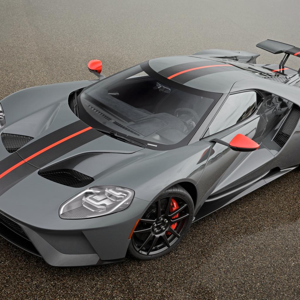 Обои Серый спортивный автомобиль Ford GT на мокром асфальте