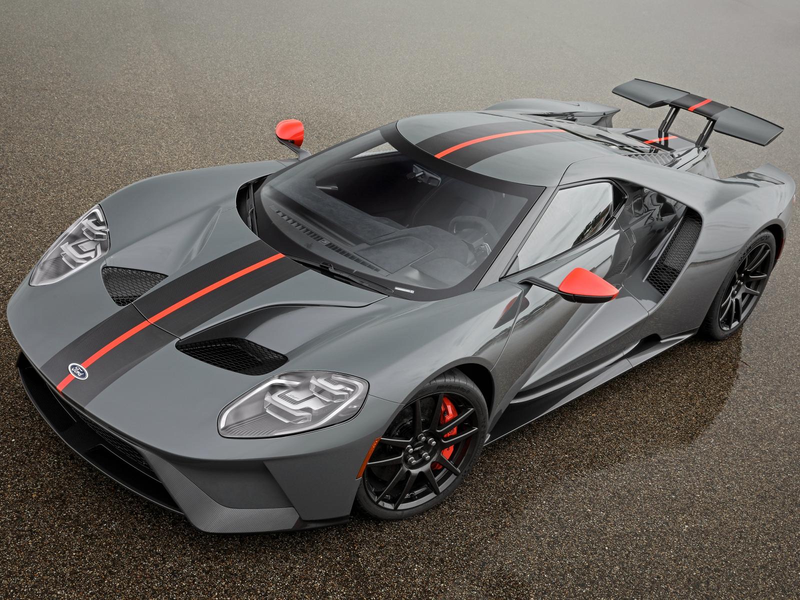 Обои Серый спортивный автомобиль Ford GT на мокром асфальте