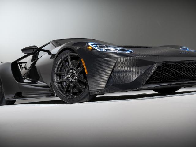 Обои Автомобиль Ford GT Liquid Carbon, 2020 года на сером фоне