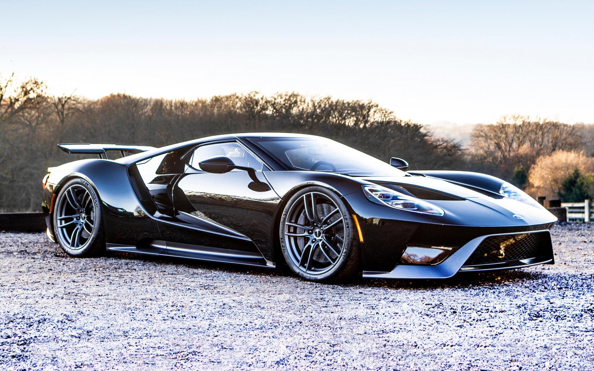 Обои Черный спортивный автомобиль ford gt на рассвете