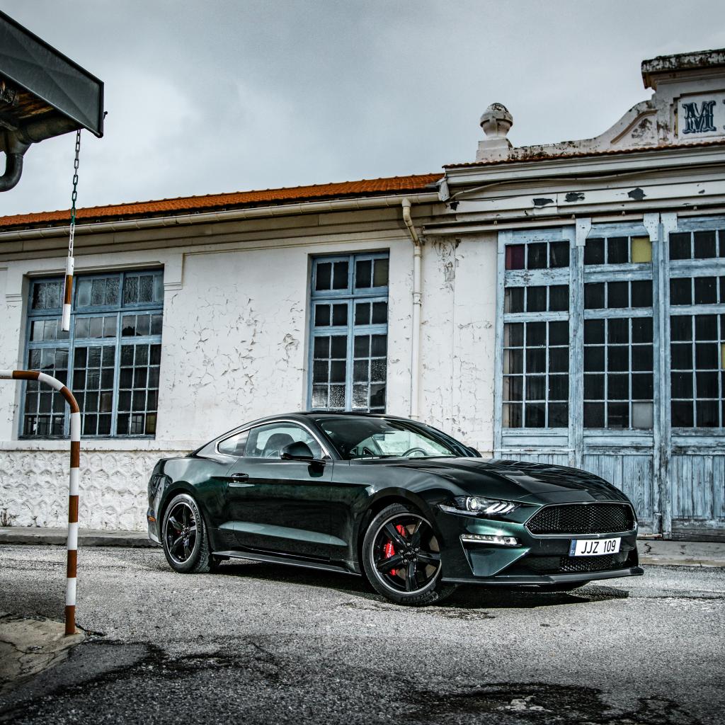 Обои Автомобиль Ford Mustang Bullitt, 2018 года на старой улице