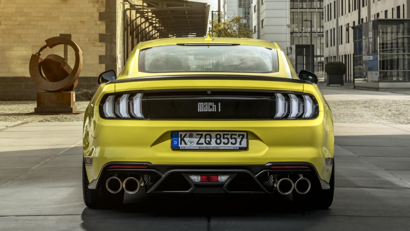 Обои Желтый спортивный автомобиль Ford Mustang Mach 1 2021 года вид сзади