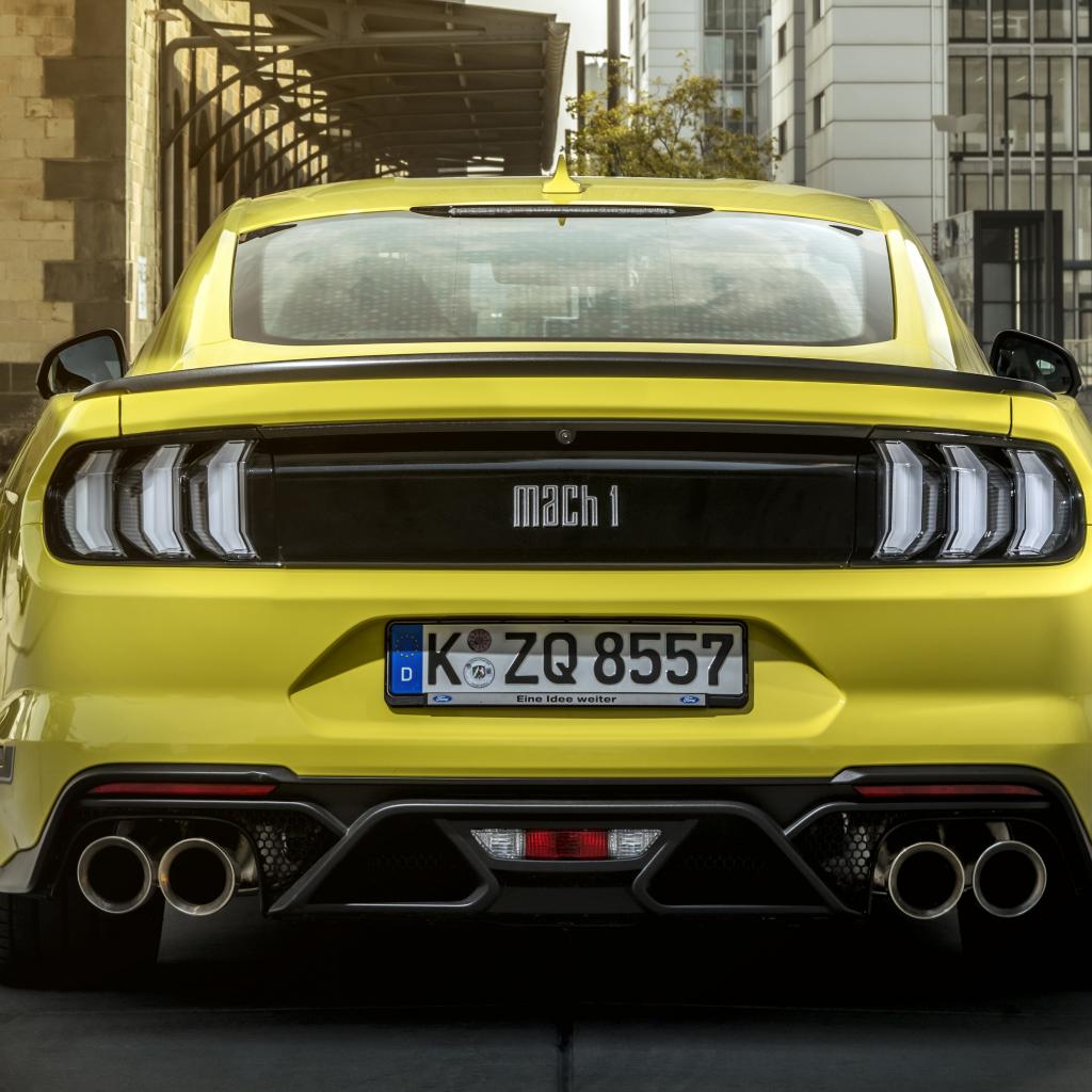 Обои Желтый спортивный автомобиль Ford Mustang Mach 1 2021 года вид сзади