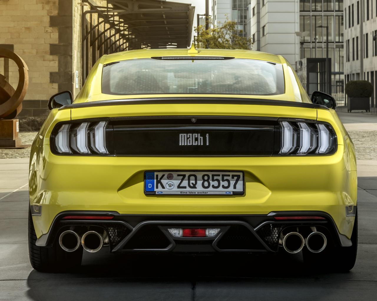 Обои Желтый спортивный автомобиль Ford Mustang Mach 1 2021 года вид сзади