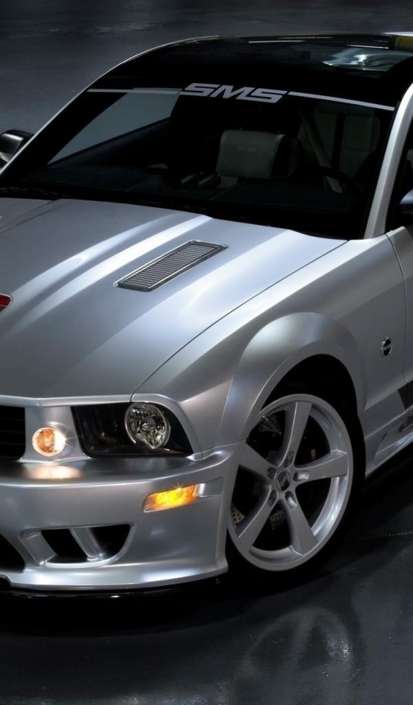 Обои Серебристый Мустанг на бетонном полу