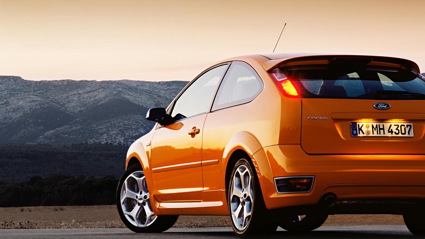 Обои Вид в профиль на голубой Ford Focus RS на сером фоне