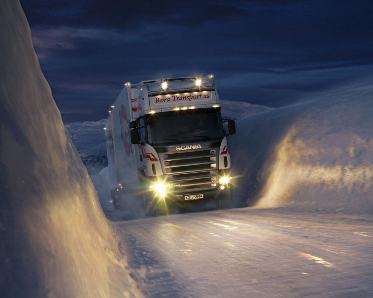 Обои Грузовик на зимней дороге