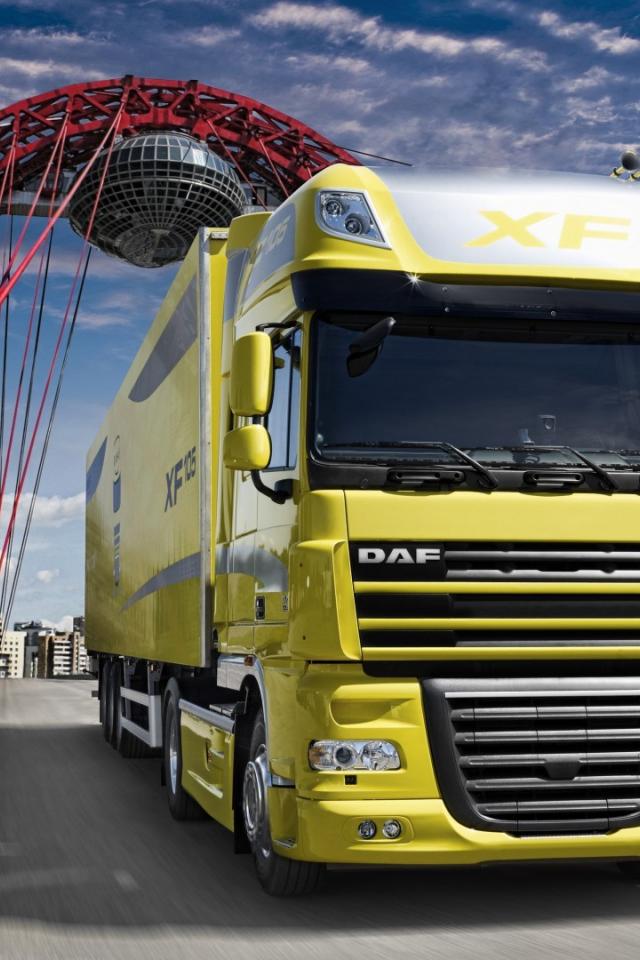 Обои Желтый грузовик ДАФ на мосту