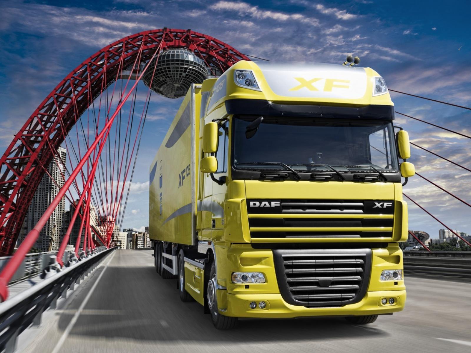 Обои Желтый грузовик ДАФ на мосту