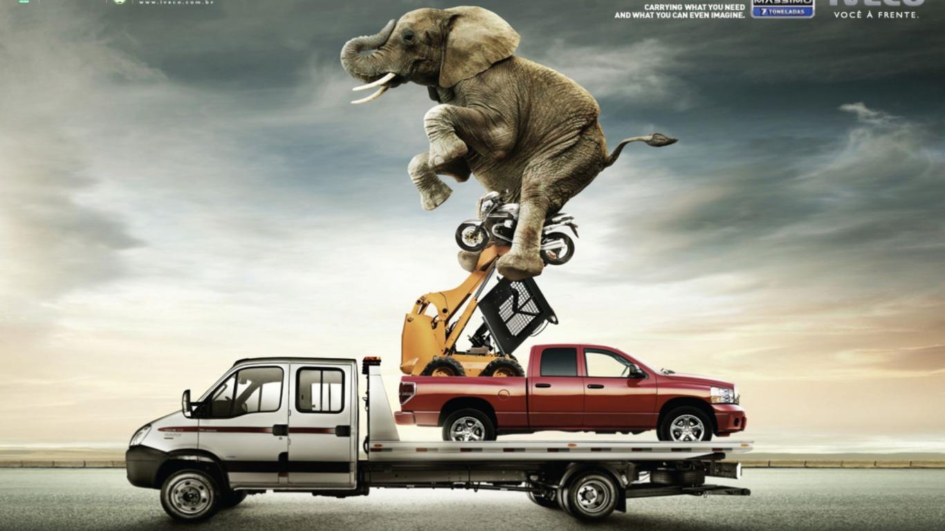 Обои Слон на автомобиле