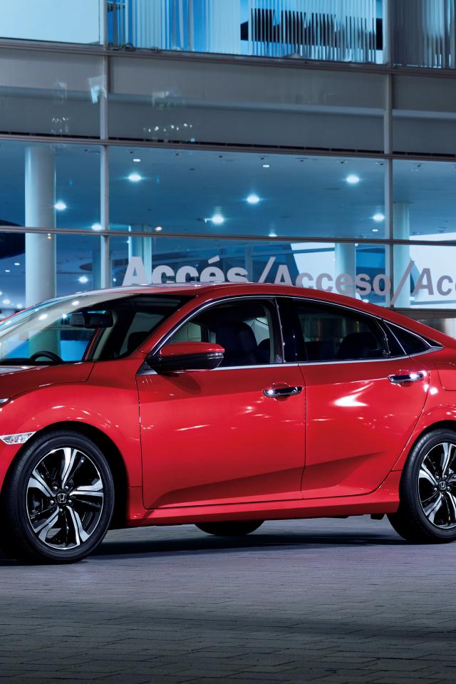 Обои Стильный красный автомобиль Honda Civic в автосалоне