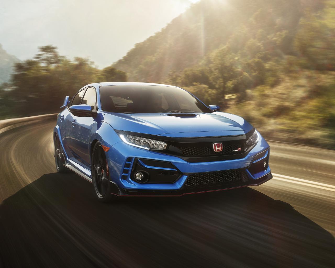 Обои Синий автомобиль Honda Civic Type R, 2020 года на трассе