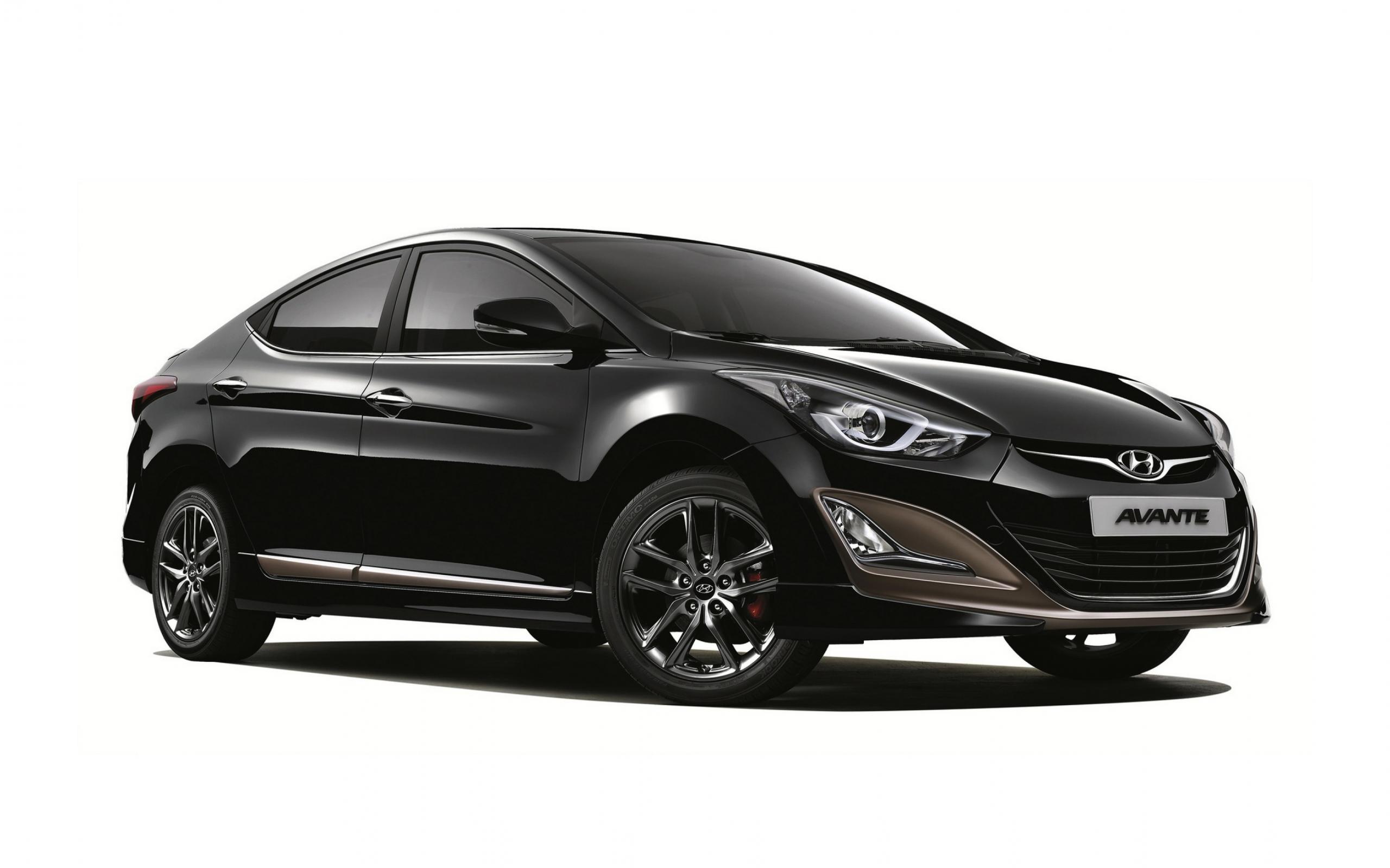 Обои Черный автомобиль Hyundai Elantra на белом фоне