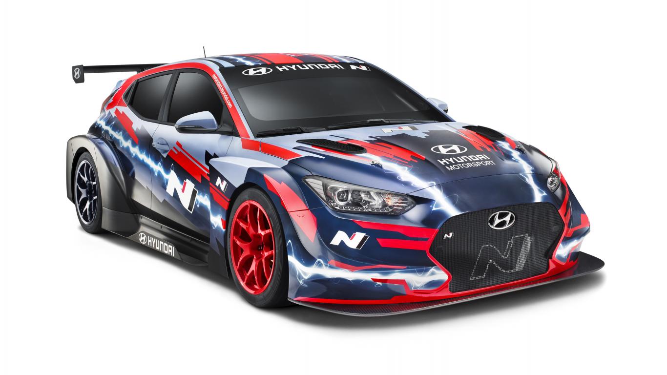 Обои Спортивный автомобиль Hyundai Veloster N ETCR 2019 года на белом фоне