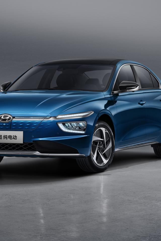 Обои Автомобиль Hyundai Mistra EV 2021 года на сером фоне