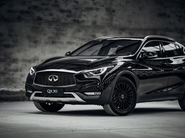 Обои Блестящий черный автомобиль Infiniti QX30 Night Edition, 2017