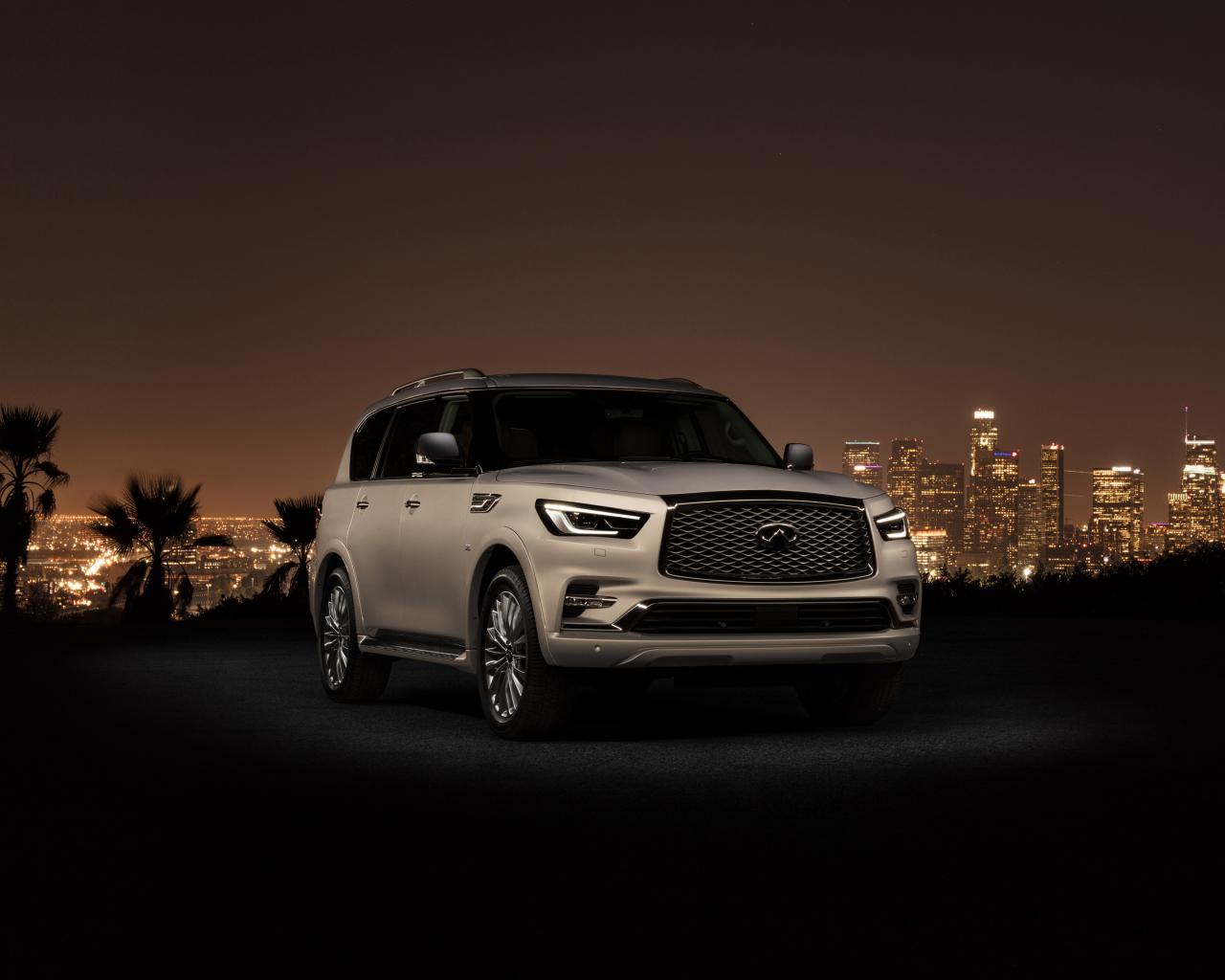 Обои Автомобиль Infiniti QX80 2018 на фоне ночного города