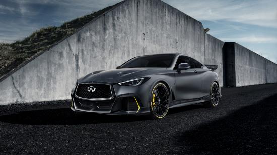 Обои Черный Infiniti Project Black S, 2018 года на фоне стены