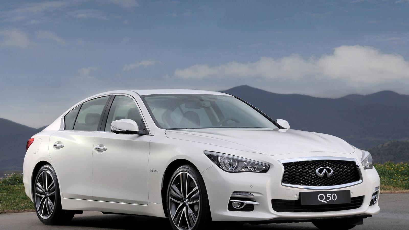 Обои Автомобиль Infiniti Q50 2014 года на дороге